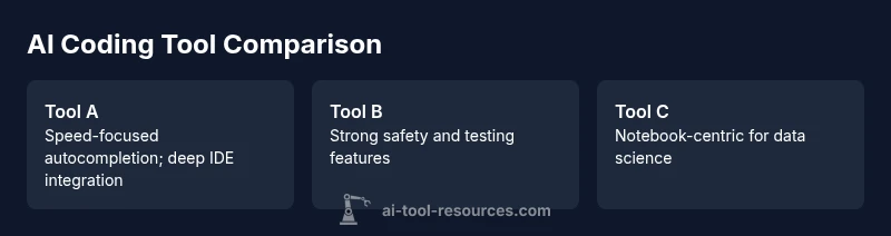 Here we describe three hypothetical AI coding assistants—Tool A, Tool B, and Tool C—focusing on core capabilities that developers care about. For Tool A, autocompletion is fast and context-aware, with deep integration into VS Code and a broad language set. For Tool B, code generation emphasizes correctness and safety, with strong linting and unit-test generation features. Tool C offers notebooks and data-science oriented support, excellent for Python and SQL, and a flexible collaboration workflow. Across all tools, consider data handling policies, on-device options, and the ability to customize prompts and templates. The takeaway is not that one tool is universally best, but that each excels in distinct contexts. Your choice should map to your projects, team size, and governance requirements.