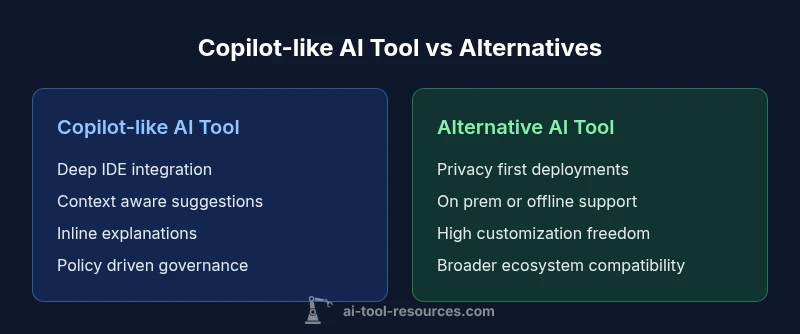 An AI tool like Copilot refers to an IDE integrated assistant that offers context-aware code completion, explanations, and automated tasks. In 2026, the best Copilot-like tools balance strong editor integration, safety controls, and customization options. The top choice depends on your priorities: seamless workflow, privacy, or advanced customization. For developers, researchers, and students, evaluating IDE support, data handling, and cost is essential.
