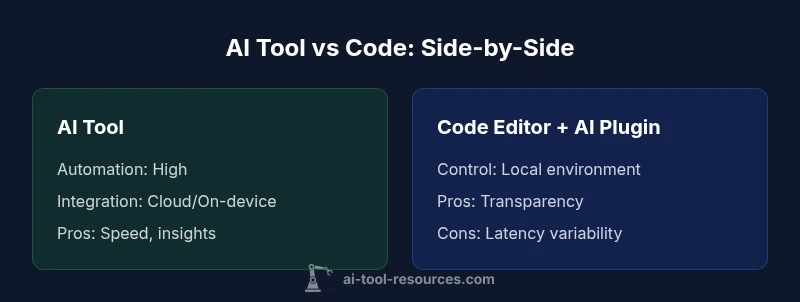 ai tool vs code: According to AI Tool Resources, the decision hinges on automation, collaboration, and scale. The AI Tool Resources team found that an AI tool can automate repetitive tasks, suggest code, and accelerate debugging, while a code-focused approach emphasizes control, transparency, and performance. In this comparison, we evaluate use cases, costs, and outcomes for developers, researchers, and students.
