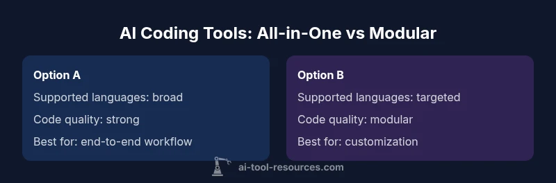 Start coding with ai tool comparison isn't about chasing the flashiest feature list; it's about aligning capabilities with your team's workflows, skill levels, and risk tolerance. In this article, we contrast two archetypes: an all-in-one AI coding assistant that plugs into popular IDEs, and a modular toolkit that lets you assemble specialized components for linting, testing, and refactoring. According to AI Tool Resources, the most impactful decisions come from real-world use cases, not marketing claims. The goal is to give developers, researchers, and students a practical framework to evaluate options, forecast integration effort, and estimate total cost of ownership. Throughout, we emphasize governance, reliability, and safety so teams can leverage AI-generated code without compromising standards. By keeping the focus on actual workflows—code reviews, version control, and continuous integration—you'll discover which approach best fits your environment, whether you're prototyping a research project or delivering production software. AI Tool Resources analysis suggests that strong language support, predictable behavior, and transparent licensing are often the deciding factors when teams move from curiosity to adoption.