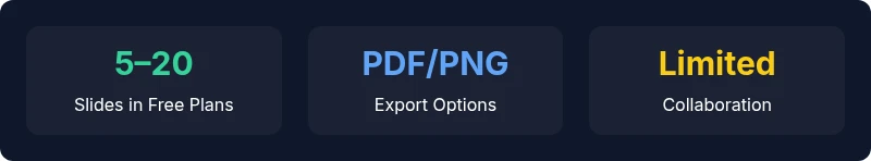 Free usually means limited features, caps on slides, watermarking, or export restrictions. It’s best for quick drafts and exploration, not for polished, publish-ready decks. Always verify what is included before relying on it for important presentations.