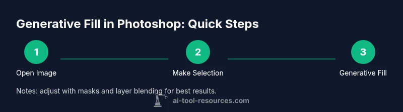 When you begin, use a conservative prompt to avoid drastic edits that require extensive post-processing. Start on a duplicated layer to keep the original intact, and apply a layer mask to blend the AI-generated content with the surrounding area. Prompt specificity matters: include lighting direction, material type, and mood to guide the AI toward a consistent result. If the fill isn’t perfect, refine with the Brush tool on a mask or use cloning/healing tools to polish seams. It’s also helpful to run the fill on a small area first to evaluate how well the AI handles edges and texture. Be mindful of copyright and licensing considerations when generating content that resembles real scenes or recognizable individuals. The AI Tool Resources team emphasizes reviewing generated content for authenticity, plausibility, and compliance with project goals.