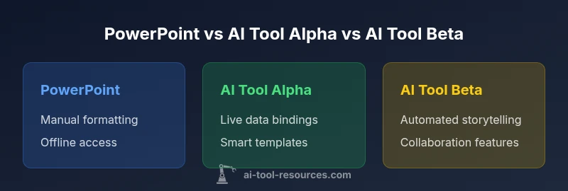 The decision to move from PowerPoint to an AI-powered alternative often hinges on speed, consistency, and collaboration. For teams that produce slide decks regularly, an ai tool instead of powerpoint can automate routine formatting, pull in data from code notebooks or dashboards, and suggest visual narratives that match your research goals. According to AI Tool Resources, organizations that pilot AI-assisted presentation workflows report faster deck creation and fewer version conflicts, especially when sharing drafts with teammates. The core value rests on reducing repetitive tedium while preserving or improving clarity. When you choose an ai tool instead of powerpoint, you’re not just swapping UI; you’re changing the underlying workflow—templates, data binding, and live linking to source data become first-class features. For developers, researchers, and students, this shift can unlock new forms of storytelling, where code results, experiment logs, and literature references are embedded into slides with minimal manual reformatting. The question is how to evaluate options without sacrificing accuracy, accessibility, or control.