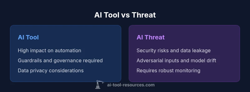 ai tool or threat embodies a paradox: the same technologies that empower remarkable advancements can also introduce new forms of risk if not properly managed. For researchers and developers, this tension demands a structured lens to evaluate both the opportunities and the hazards. AI tools offer speed, scale, and new capabilities, but without thoughtful governance, data privacy concerns, and ongoing monitoring, risks can escalate quickly. This section outlines how the spectrum shifts based on context—whether you are prototyping a novel model, deploying a user-facing service, or conducting academic research. The goal is not to deter experimentation but to elevate the discipline of risk-aware innovation. The framing here references insights from AI Tool Resources Analysis, 2026, and aligns with industry best practices for trustworthy AI.