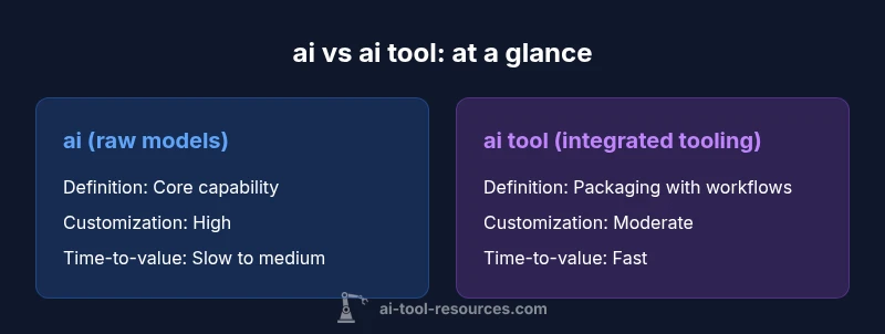 ai vs ai tool is not a single answer but a decision framework. In short, AI models represent raw capability, while AI tools package those capabilities with workflows, guardrails, and integration. The AI Tool Resources team highlights that choosing between the two hinges on goals, data strategy, and team proficiency, not one-size-fits-all. This guide breaks down when each approach shines.