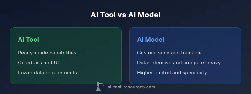 In practical terms, the distinction comes down to scope, control, and lifecycle. An AI tool provides ready-made capabilities with an interface and built-in safeguards designed for immediate use. An AI model is a trainable algorithm that you tailor to a specific task, often requiring data, compute, and ongoing maintenance. For many teams, this distinction becomes the compass for selection, architecture, and governance. The reason this matters is not just semantics; it determines how you deploy, monitor, and evolve an AI system over time. The question what is the main difference between an ai tool and an ai model has a clear answer when you think about use cases, data flows, and ownership. This article aligns with the guidance from AI Tool Resources to help developers, researchers, and students navigate choices with discipline and foresight.