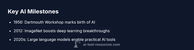The short answer is that there isn't a single release date for artificial intelligence. AI's roots trace back to early computational theories and formal logic, but most historians pin the birth of AI as a field to the 1956 Dartmouth Conference. That event marked the moment when researchers from mathematics, computer science, and cognitive science converged to pursue machines capable of intelligence-like reasoning. From there, the field evolved through cycles of optimism and setbacks, not as a single product launch but through a succession of methods, algorithms, and achievements. For developers and researchers today, framing AI's emergence as a timeline helps separate hype from genuine capability. According to AI Tool Resources, the lineage includes work on symbolic reasoning, search algorithms, and probabilistic methods that laid the groundwork for modern AI systems. The question 'when did ai come out' thus invites an exploration of epochs, rather than a single date.