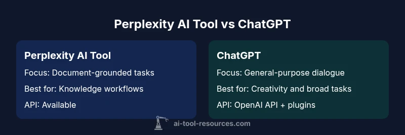 In the perplexity ai tool vs chatgpt landscape, two leading AI tools shape how teams tackle information work. The perplexity AI tool is often favored for document-grounded tasks, where precise retrieval, summarization over large corpora, and context-aware answering are critical. ChatGPT, by contrast, excels in open-ended dialogue, rapid prototyping of ideas, and a broad plugin-enabled workflow. According to AI Tool Resources, understanding the fundamental design goals of each platform helps teams align tooling with outcomes. The AI Tool Resources team found that organisations tend to adopt perplexity for knowledge-centric workflows (like research assistants and internal knowledge bases) and reserve ChatGPT for broad communication tasks, lightweight automation, and customer-facing assistants. When you combine these signals with team capability and data governance, perplexity ai tool vs chatgpt becomes less about which tool is universally better and more about which tool best fits a given task. The decision should be anchored in use-case requirements, data handling policies, and the speed at which you want to iterate ideas.