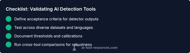 A detector is not a single tool but part of an ongoing system. Establish continuous validation pipelines that monitor drift, calibration stability, and performance over time. Use version control for models and data, run periodic cross-tool comparisons, and set up dashboards for quick health checks. When detectors are updated, conduct backtests to confirm no regression in critical scenarios. Plan for governance reviews and retirement of outdated models to maintain reliability and safety in AI deployments.