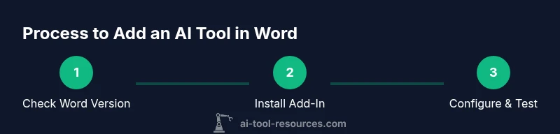 When people talk about adding an AI tool to Word, they usually mean a software extension or in-app feature that uses artificial intelligence to assist writing, editing, or data analysis. Examples include grammar and style suggestions, auto-summarization, paraphrasing, intent detection, and data extraction from tables. In practice, you’ll be selecting from two broad categories: built-in AI features inside Word and external add-ins or plugins from the Office Store or enterprise marketplaces. According to AI Tool Resources, adding AI capabilities to Word can significantly speed up drafting and improve consistency for writers, researchers, and students. The key is to decide which tasks you want AI to help with and to evaluate privacy, performance, and compatibility before enabling anything in your document workflow.